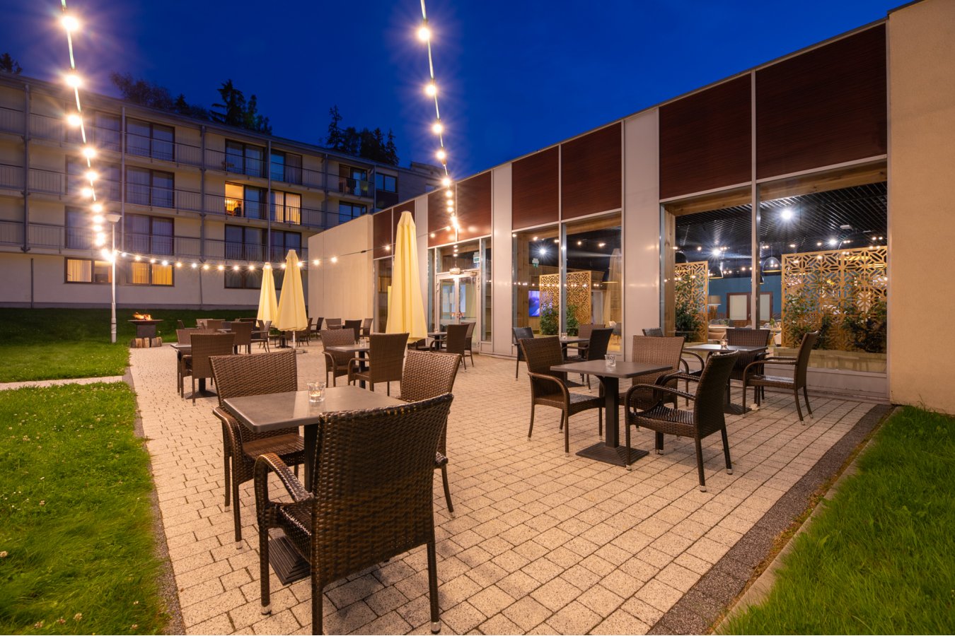 a medzinárodných jedál. V letných dňoch si hostia môžu vychutnať jedlo na slnečnej terase s výhľadom