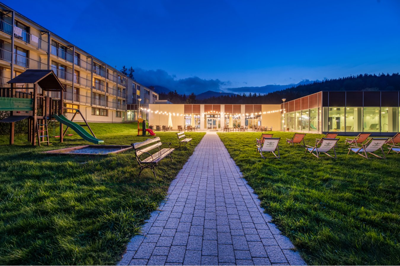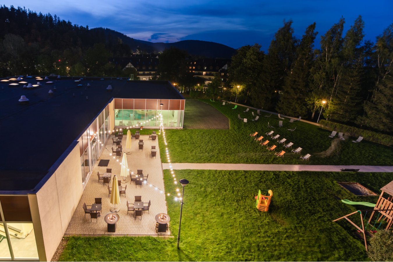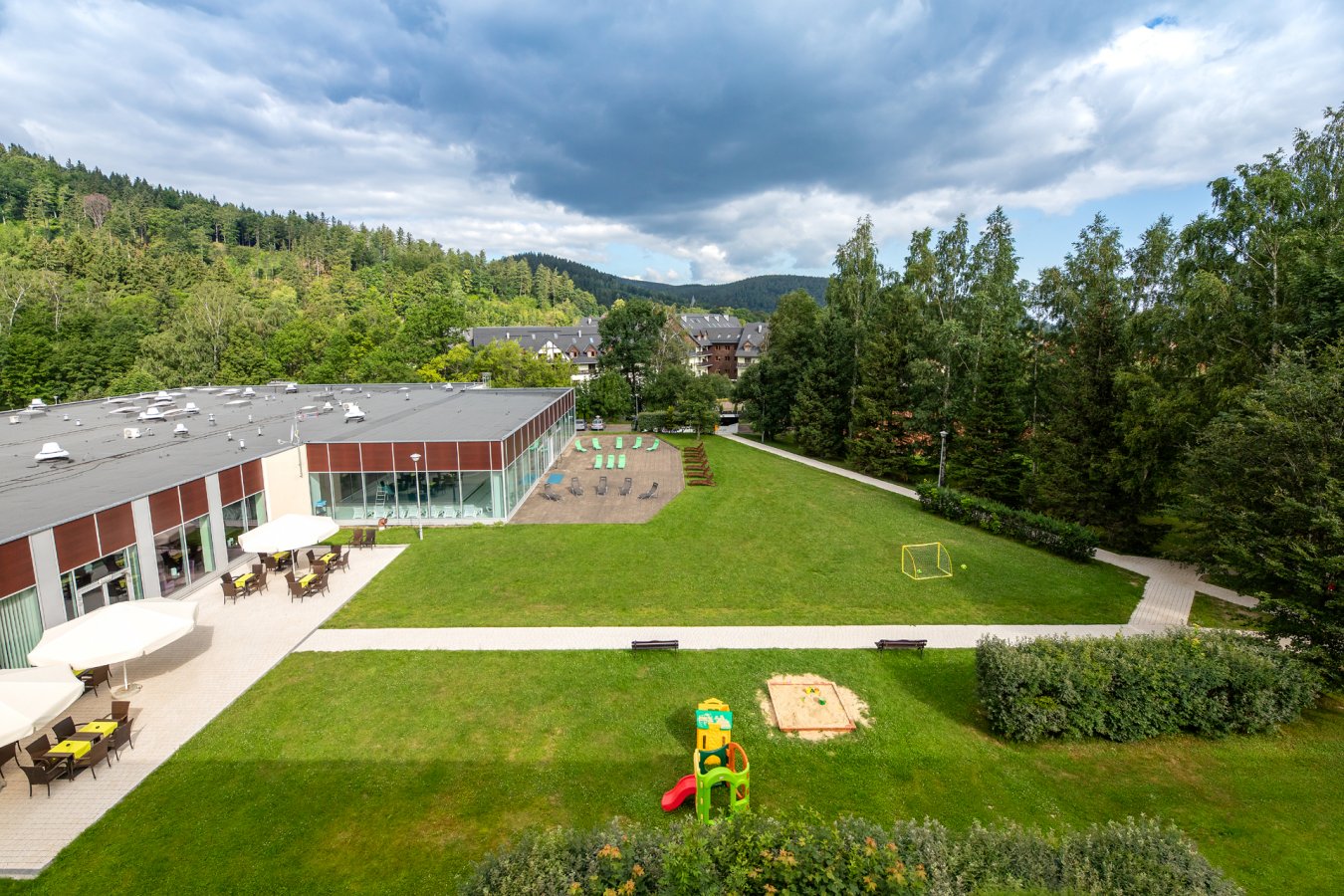 obklopený smrekovým lesom, len 300 m od centra mesta Karpacz. Vychádzkové zelené plochy pri hoteli,